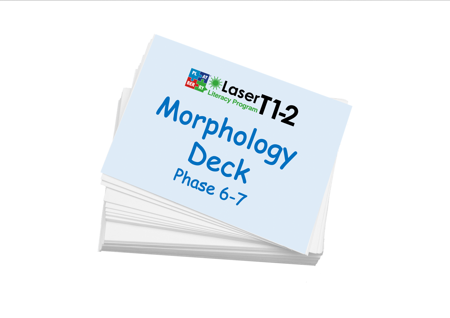 The pack contains approximately 125 Morphology Cards aligned to the Playberry Laser Phase 6-7 Morphology Scope and Sequence.