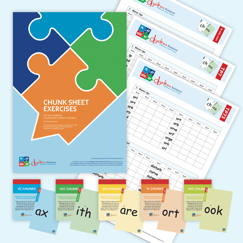 This bundle includes the complete Playberry T3 Chunk Card Set (333 cards) and the Playberry Chunk Exercise Sheets (44 sheets), giving Intervention Teachers and Tutors a powerful tool for students with blending difficulties.