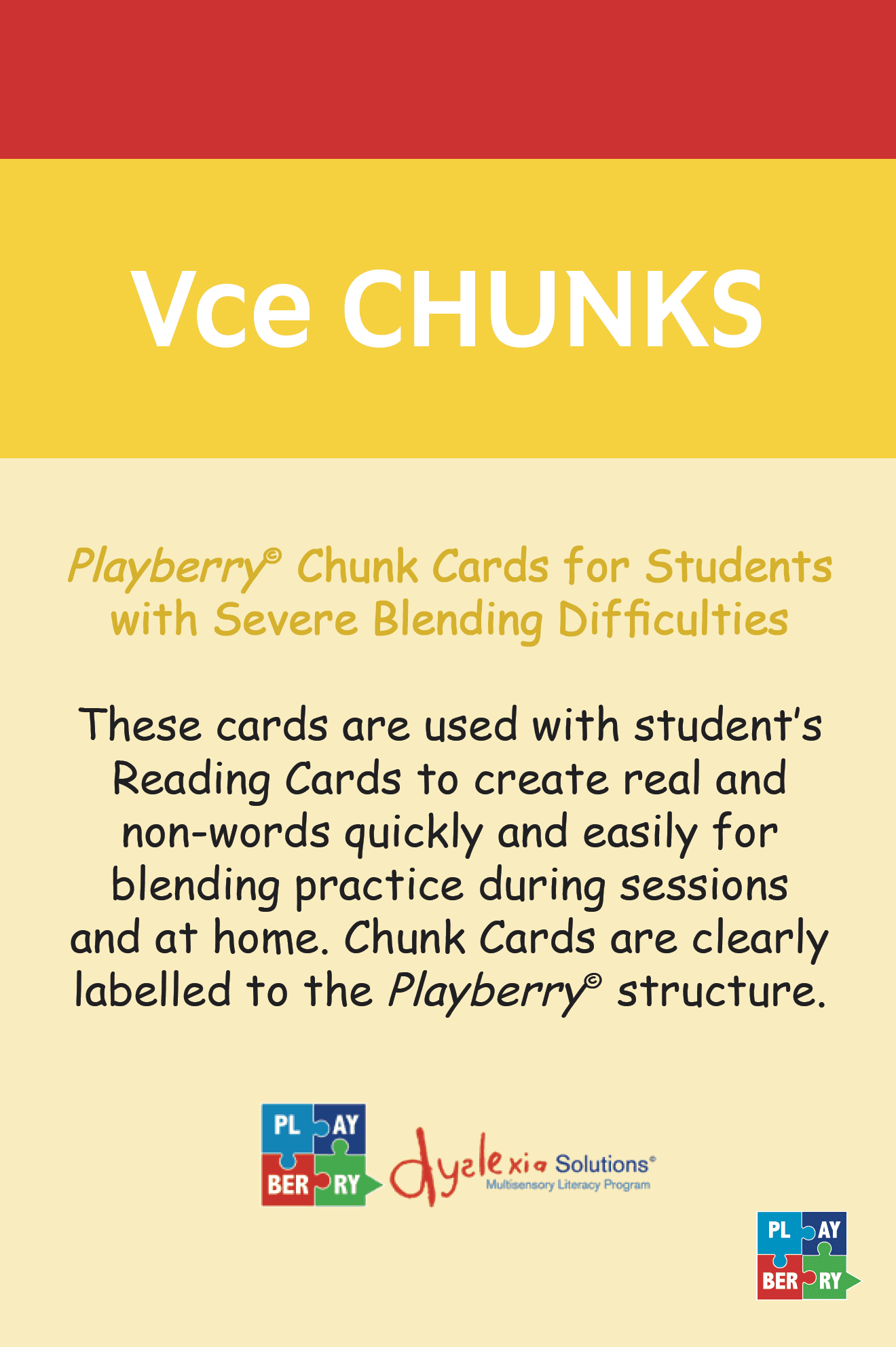 Playberry T3 Chunk Cards are clearly labelled to the Playberry T3 structure and can be added to a student’s Reading Card pack and then removed once a student has ortographically mapped them and is easily blending words and non-words with chunks.