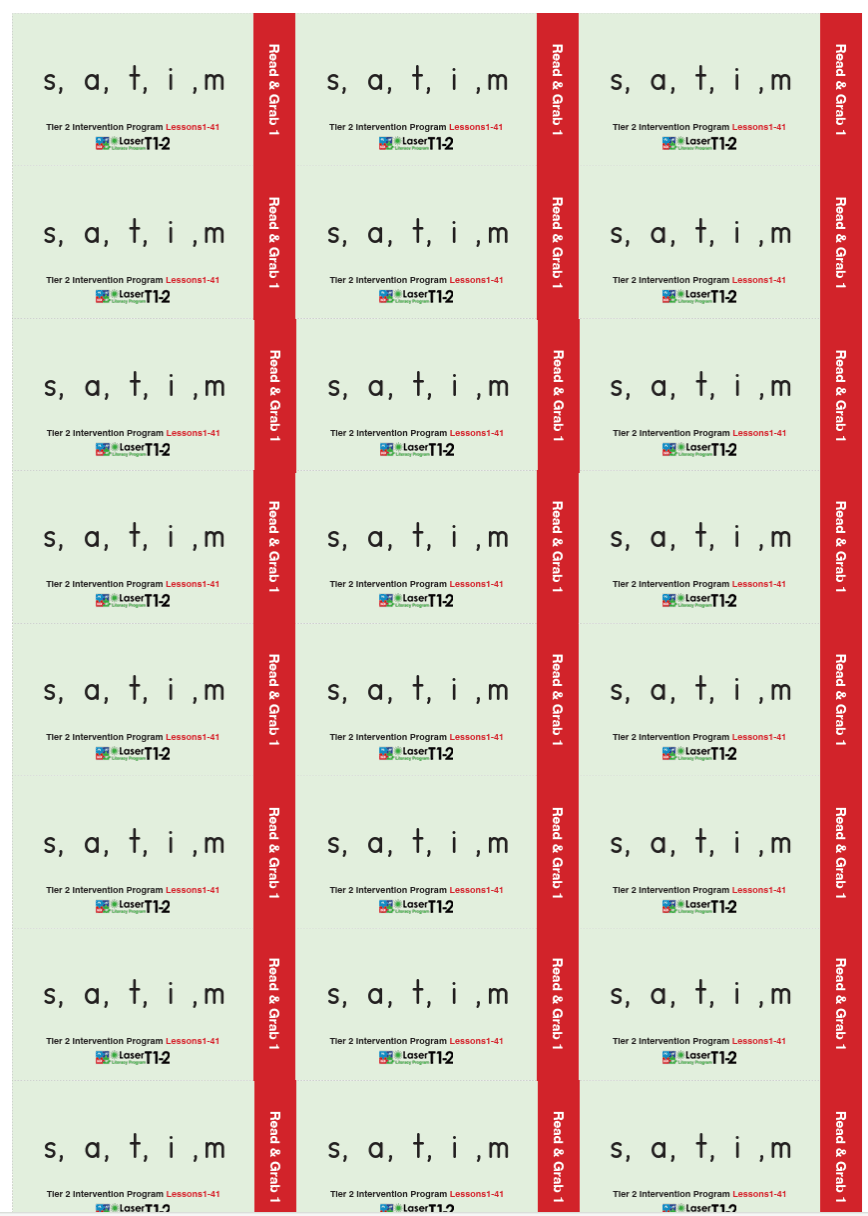 The Playberry Laser Tier 2 Set 1 Games Pack is used in Lessons 1-41 of the Tier 2 Intervention Program. In this set, there are 41 games, colour printed on both sides of 350 gsm satin-finish artboard. Finish size A4; 210mm W x 297mm. All you need to do is cut them out and play!